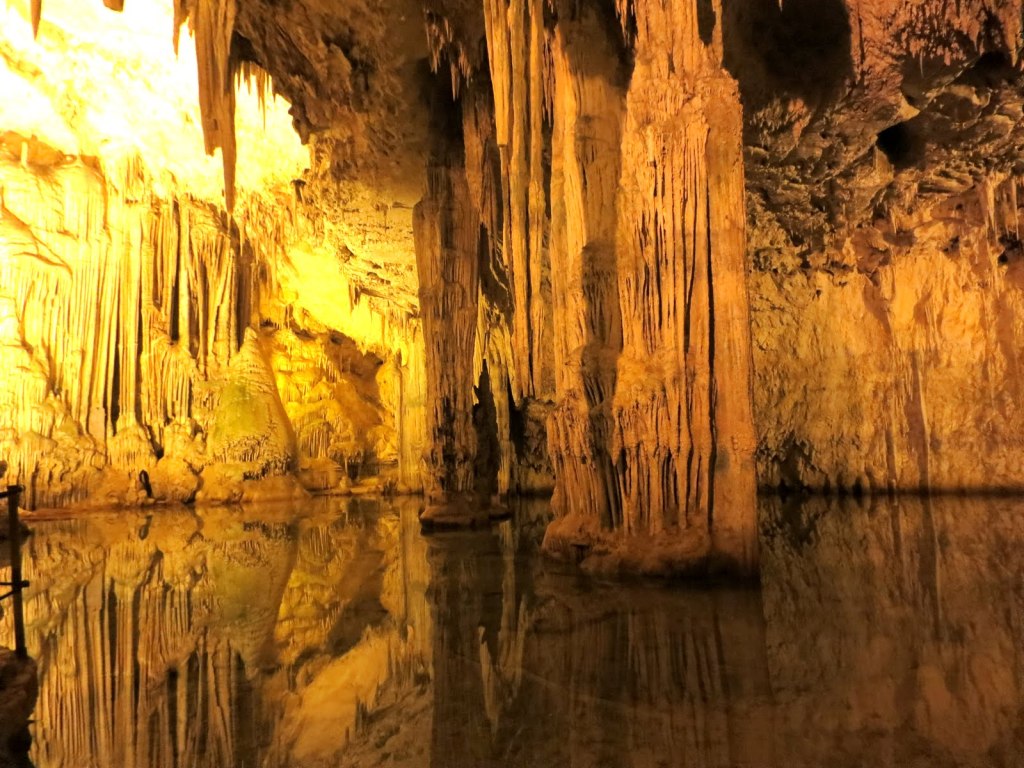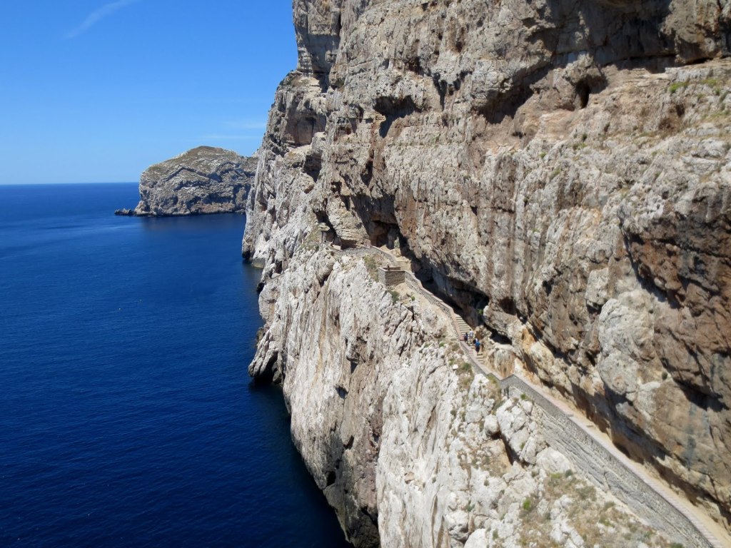 Weiter geht es zur Neptungrotte (Weiterleitung zu Google Maps). Ein tolles Ausflugsziel, auch wenn man seinen Standort für ein paar Tage in Alghero hat. Über 600 Treppenstufen heißt es hinunterzugehen. Und natürlich irgendwann wieder hinauf. Bei 30 Grad nicht unbedingt ein Vergnügen, aber ein Erlebnis. Wer clever ist, lässt sich von Alghero mit einem Boot hinbringen:-) Angebote gibt es im Hafen reichlich. Die Grotte mit ihren Stalagmiten und Stalagtiten ist auf jeden Fall einen Besuch wert.