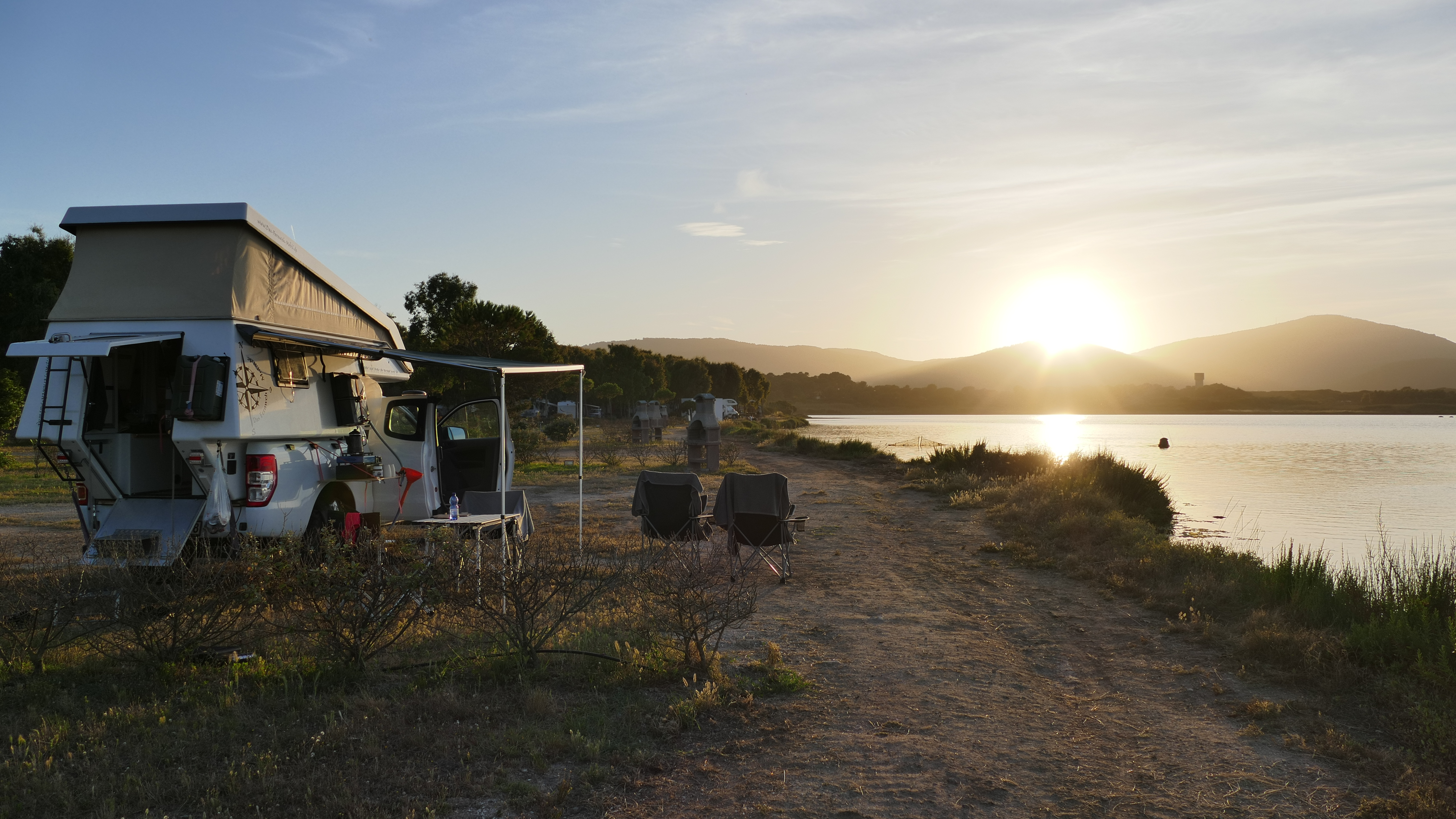 Dann geht es weiter nach Alghero, für mich die schönste Stadt auf Sardinien. Hier kann man in der Altstadt bummeln gehen und in den unzähligen Restaurant entlang der Stadtmauer, frischen Fisch mit herrlichem Ausblick verspeisen. Der schöne Campingplatz Camping Village Laguna blue liegt etwas außerhalb an einer Lagune. Nicht der Billigste, aber super gelegen, sauber und freundlich. Wenn man Glück hat, ist man am Ende des Platzes alleine und genießt den Sonnenuntergang an der Lagune und schaut zu, wie die Fische aus dem Wasser springen. Allerdings gibt es nur im vorderen Bereich des Campingplatzes Schatten. Keinesfalls sollte man die Pizza des im Campingplatz gelegenen Pizzeria verpassen. Will man nun in die Stadt, spielt die Absetzkabine ihre Vorteile aus: Man sattelt ab und lässt die Kabine stehen oder fährt direkt mit seinem kompakten Camper zum 5 km entfernten Hafen. Da freut man sich, dass man kein großes Wohnmobil hat. Dort gibt es jede Menge Parkplätze und es ist ein kurzer Weg zur Altstadt.