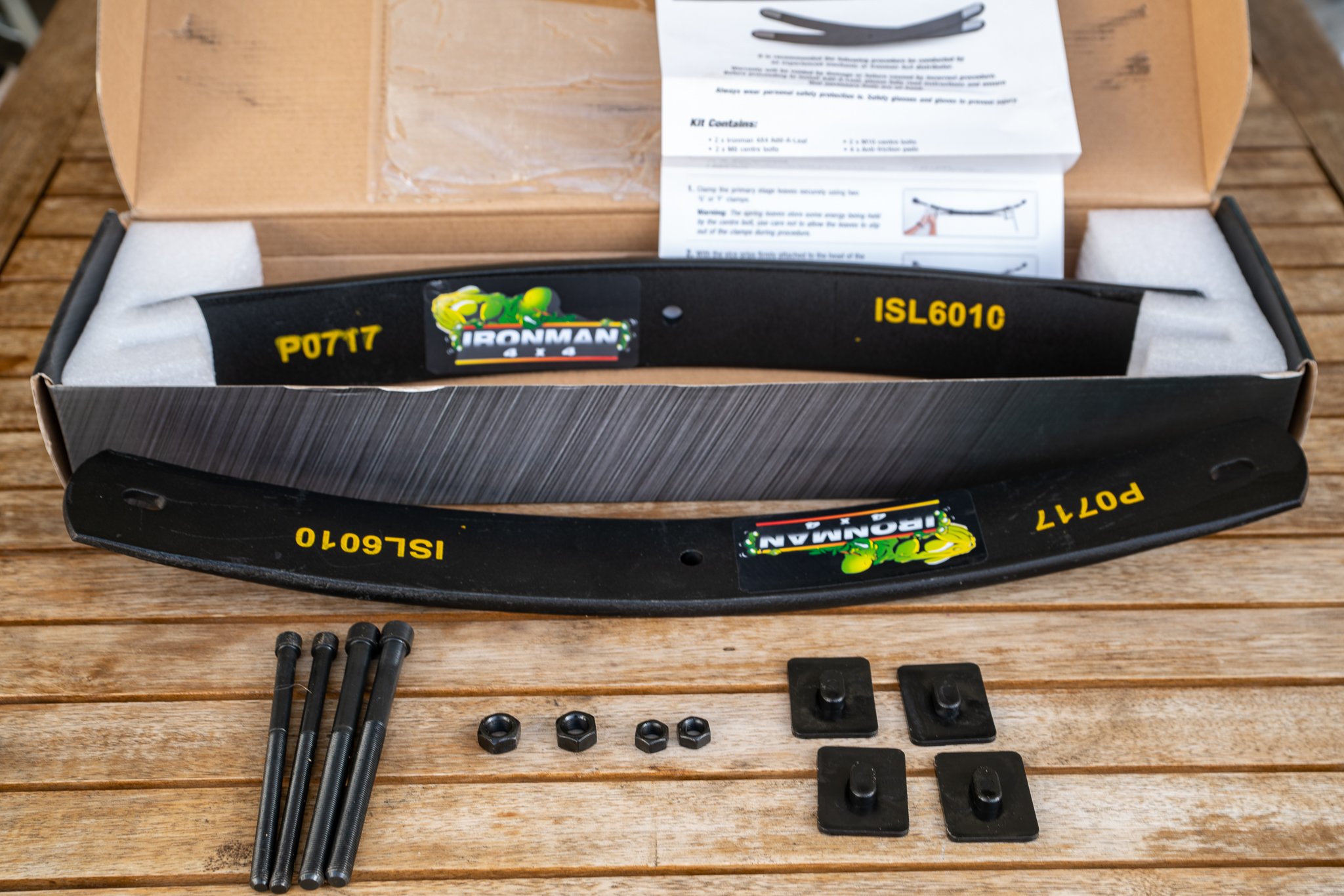 Aus meiner Suzuki-Rallye Zeit kannte ich das Add-a-Leaf System, als günstige Möglichkeit das Auto etwas härter, bzw. eine größere Zuladung zu erreichen. Beim Durchblättern des Ironman4x4 Katalog wurde ich fündig. Der australische Hersteller verspricht eine Mehrzuladung von ca. 300-400 kg und eine leichte Höherlegung. Und das alles für 150.-€. Allerdings ohne TÜV. Hier sollte man mit dem Prüfer seines Vertrauens vorab besprechen, ob das per Einzelabnahme möglich ist. Und es ersetzt natürlich auch kein vollwertiges, abgestimmtes Offroad Fahrwerk. Aber es hilft, dass eigentlich schon ganz gute Fahrwerk des Rangers etwas offroadtauglicher zu machen, ohne die neuwertigen Komponenten eines Neufahrzeug gleich zu entsorgen. Die Montage der zusätzlichen Feder ist denkbar einfach. Fahrzeug auf einer Hebebühne anheben, Schrauben der Blattfederbefestigung lösen, die mittlere Schraube die den Sitz der Federblätter sichert lösen und herausziehen,Zusatzfeder einschieben,verlängerte mittlere Schraube eindrehen- Fertig. Evtl. muss man noch eine oder beide Achsbefestigungen lösen um die Feder zwischenzuschieben.Dann heißt es natürlich Achse vor dem herunterfallen zu sicher. Eine Montage sollte jede Werkstatt durchführen können. So hat man Zeit gewonnen, für ein hochwertiges Fahrwerk zu sparen.