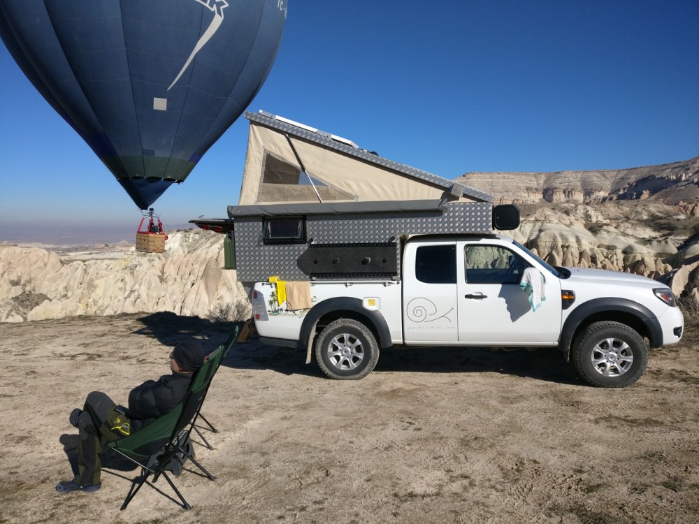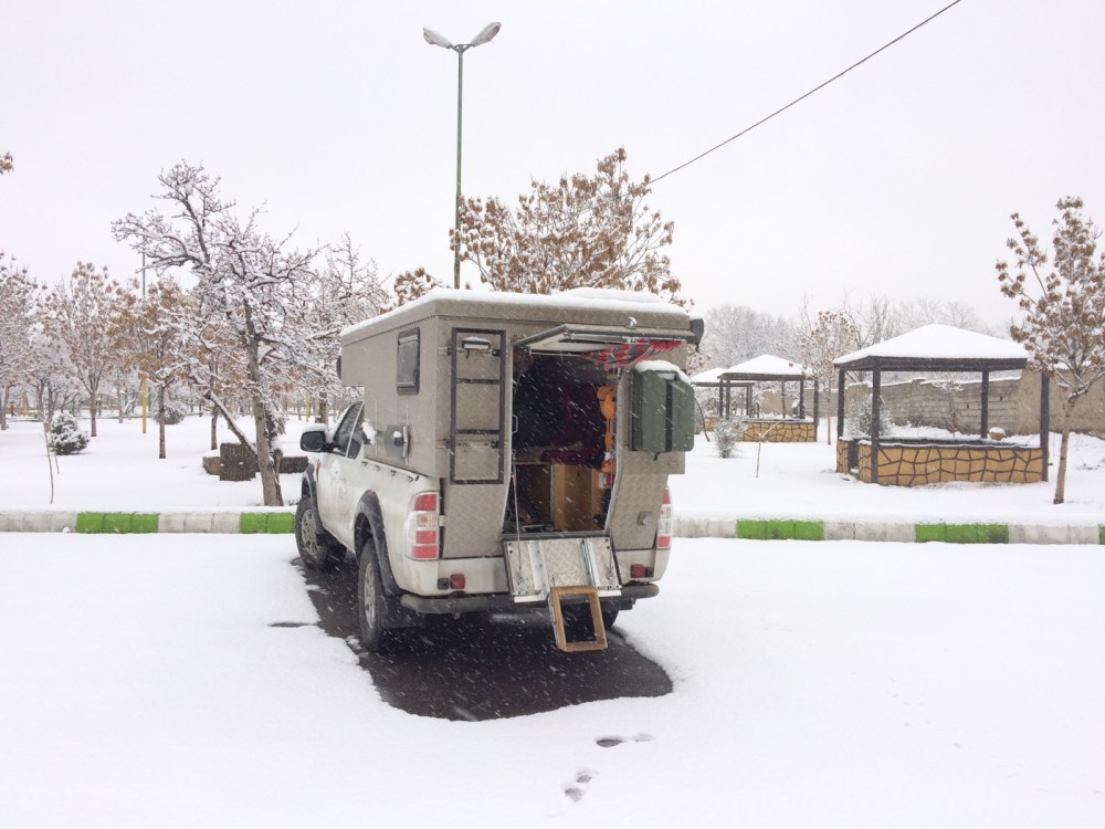 D+O: Wir haben im Winter sechs Wochen in Kaş, im Südwesten der Türkei in einem Apartment verbracht. Die Kabine ist ja nicht so ganz wintertauglich und wir hatten dann auf der Weiterfahrt in den Osten der Türkei und den Iran viel Schnee und teilweise -10° C und kälter. Das hat schon gereicht. Seitdem wir dann weitergefahren sind, haben wir tatsächlich nur im Auto übernachtet. So ca. alle fünf bis sieben Nächte schieben wir mal eine Hostelübernachtung ein, um eine komfortable Dusche zu haben oder Wäsche zu waschen, aber auch da ist es uns lieber, wenn wir im Auto übernachten können. Es ist – wie gesagt – unser Zuhause und wir fühlen uns dort am wohlsten.