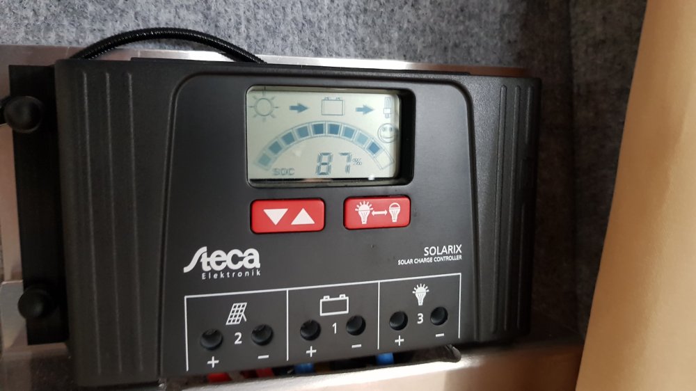 Zurzeit wird meine 100 Ampere Versorgungsbatterie in der Kabine ausschließlich mit dem Solarpanel gespeist. Als Verbraucher ist eine Waeco CFX 40 angeschlossen (läuft auf Reisen nonstop bei 4–7 Celsius), 3 LED-Lampen, ein Stromwandler, ein Kfz / USB Stecker und die Standheizung. Das hat alles bis jetzt hervorragend geklappt. Lag aber daran, dass wir nur sonnen verwöhnte Länder bereist haben. Ist es bei der Reise bewölkt und begibt man sich dann noch für längere Zeit auf eine Fähre, sieht man, dass die Batterieleistung in die Knie geht. Wird das dann noch kalt, sodass man seine Standheizung laufen lassen muss, wird es eng.