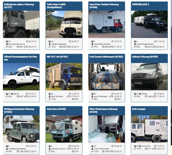 Wem zu dieser Zeit fürchterlich langweilig ist und etwas Inspiration für die Zukunft sucht, der kann einmal einen Blick in die Bildergalerie von Ulrich Dolde werfen. Hier wurde in diesen Tagen das 500.ste Reisemobil vorgestellt! Herzlichen Glückwunsch! Ich nehme an, dass es die größte Datenbank im ganzen World Wide Web ist?! Man findet hier eine gigantische Bildergalerie und Daten von innovativen Reisegefährten, die von Ihren Besitzern in liebevoller Handarbeit und mit vielen tollen Ideen gefertigt wurden.