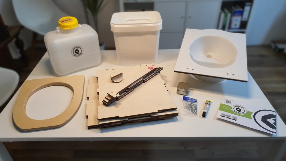 Seit diesem Jahr sind sogar zwei Modelle erhältlich die passen, allerdings scheidet das eine Model auf Grund des zu kleinen Urinbehälters für mich aus. Deshalb habe ich mich für die brandneue MiniLoo von Kildwik als Bausatz entschieden. Ein Eigenbau schied von vornherein aus, da es bei Einzelbestellung der Komponenten kaum einen Preisvorteil gibt und ich mit meinem bescheidenden Werkzeug nicht die gewünschte Qualität fertigen kann. Außerdem müssen die verbauten Teile (Feststofftank, Urinbehälter und Trennschale) auf Grund der geringen Bauhöhe optimal aufeinander abgestimmt sein. Da bleiben nur wenige Millimeter Spiel, damit es aufeinander passt. Bei großzügigem Platzangebot ist ein Eigenbau etwas einfacher zu gestalten.