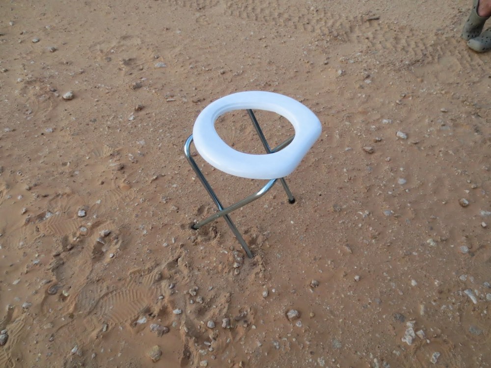 Zu Defender und Suzuki Zeiten habe ich mir entweder mit Spaten oder dem unten gezeigten Gestell beholfen. Das Platzangebot war halt nicht da und es hat auch so irgendwie immer funktioniert. Allerdings war es nicht immer angenehm im strömenden Regen in polnischen Wäldern oder in Tunesien bei sengender Hitze sein Geschäft zu verrichten. Dazu gibt es lustige Geschichten, die ich hier nicht veröffentlichen darf…. Mittlerweile kritisiere ich es sogar, wenn man sein Geschäft in der freien Natur hinterlässt. Gerade an den Hot-Spots, zum Beispiel in den Westalpen oder Tunesien, Marokko, Island etc. die wir als individual Reisende und Offroader so lieben, sind oft die Büsche und der Wüstensand voll mit weißen Fahnen und braunen Hinterlassenschaften. Und wenn man dann auf eine Düne klettern will, muss man aufpassen, dass man nirgends hinein tritt. Dazu fällt mir zum Beispiel der „verlorene See in Tunesien“(Ain Quadette, Lac rochette oder auch Huaret Richet genannt), der „Canale Grande“ in Sardinien oder Grillstellen am „Col de Parpaillon“ oder „Mount Jafferau“ ein. Alles inoffizielle Hotspots von Camper ohne jegliche Infrastruktur. Ist der „geheime Platz“ dann noch durch Park4night oder anderen Apps veröffentlicht, riecht es im Umfeld schnell wie am Kölner Hauptbahnhof. Klar ist es immer nur „einer“, der mal „eben“ sein Geschäft erledigen will. Aber an den Hotspots summiert sich das Ganze. Der Camper- und Campingmarkt explodierte in den letzten Jahren und so werden aus einzelnen plötzlich ganz viele.