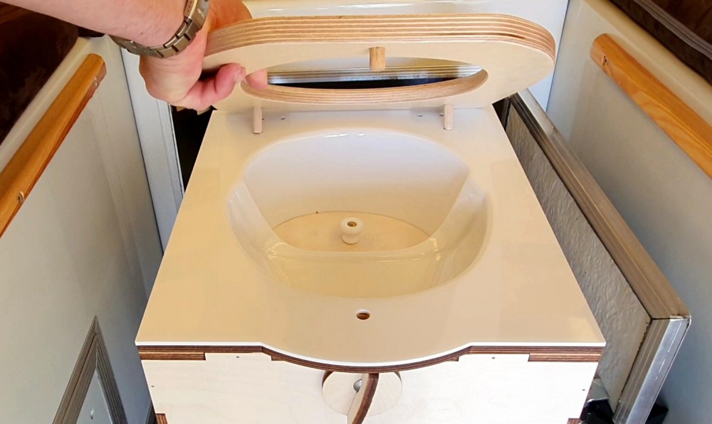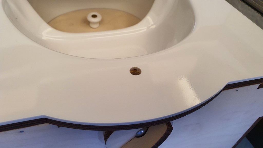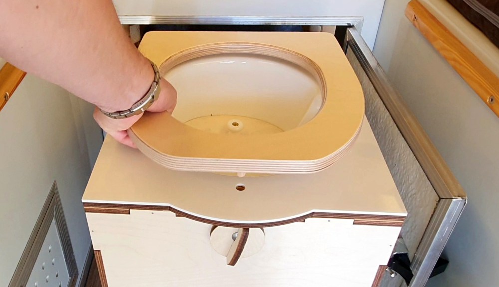 Lange habe ich überlegt eine Toilette selbst zu fertigen. Wenn man ringsherum im Mobil viel Platz hat kann, man sich sicher mit preiswerteren Behältnissen und Schläuchen etwas zusammen bauen. Aber durch die beengten Platzverhältnisse im Fernwehmobil müssen alle Komponenten direkt und perfekt auf einander abgestimmt sein. Ich habe mir den Wolf gegoogelt, um zum Beispiel einen passenden Urintank zu finden, der in der Höhe passt und auch noch 10 Liter aufnehmen kann. Um eine so hochwertige, edle und optisch ansprechende Kiste zu fertigen, benötigt man das entsprechende Equipment . Ich habe leider keine Laserschneidmaschine im Keller stehen, mit der man Birkenmultiplexplatten auf zehntel Millimeter zuschneiden kann :-) Ich hätte es in rudimentärer Baumarkt Optik gestaltet. Und den Trick mit dem Exzenter und Magneten um die Trennschale anzuheben und die vielen anderen Details, wären für mich schwierig umzusetzen. Also sollte man seine Grenzen kennen und sich etwas Schönes gönnen. Von den Leuten die etwas können.