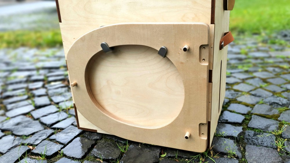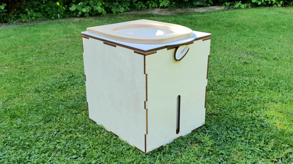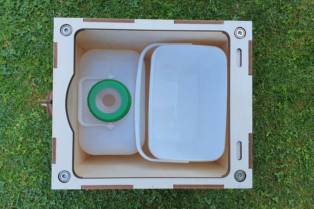 Auch die Holzbox sollte man mit einem Öl oder Farbe behandeln. So lässt sich die MiniLoo leichter reinigen und schmuddelt im laufe der Zeit nicht so schnell an.