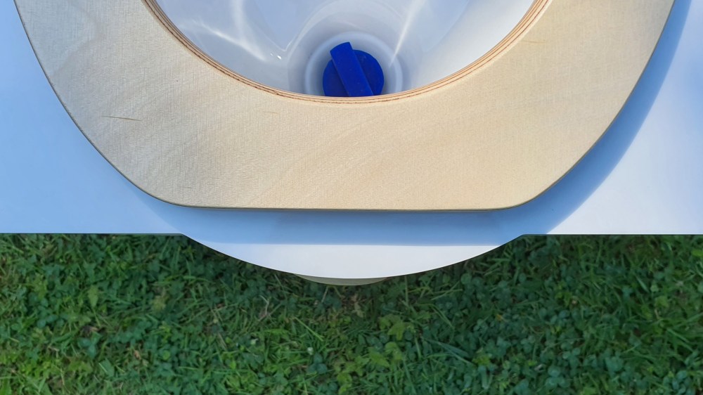 Und zum Anderen, um einen zusätzlichen Deckel mit einer Silikon Dichtung. Dieser umschließt den Urinabfluss der Trennschale. Wer sich öfters im unruhigen Gelände bewegt, sollte das Geld investieren! Wer die Toilette ins Gartenhäuschen stellt, kann das Geld sparen.