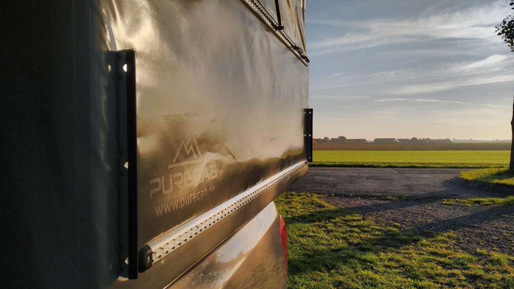 <p value="<amp-fit-text layout="fixed-height" min-font-size="6" max-font-size="72" height="80">Das Ungewöhnlichste ist mit Sicherheit die Konstruktion. Der innenliegende Rahmen, der Werkstoff Holz und das Planentextil als Außenhülle sind hier maßgeblich. Das Holz schafft einen robusten Rahmen und gleichzeitig den Charakter der Kabine. Die Plane bildet den Wetterschutz. Viel Reiseerfahrung ist in die Aufteilung des Innenraums eingeflossen. So kann man bspw. noch auf der Sitzbank sitzen, wenn das Bett ausgezogen ist. Das Besondere der PureOne kann man auf drei Punkte herunterbrechen: <strong>Gewicht, Preis, pures Konzept.</strong>
