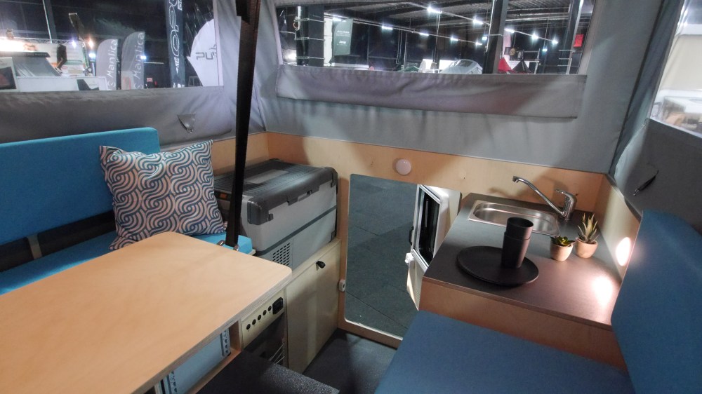 Du meinst die technische Ausstattung? Wir verbauen serienmäßig: eine 40 Liter- Kompressorkühlbox, eine 2kW-Diesel-Luftheizung, einen 80Ah LiFePo Akku mit integriertem Bluetooth BMS, 2x150W Solarmodule, einen 6-Liter-Warmwasserboiler und 32-Liter Frischwasser in Kanistern, ein Edelstahlspül/- waschbecken mit Mischarmatur und 6 mobile LED-Spots als Beleuchtung.