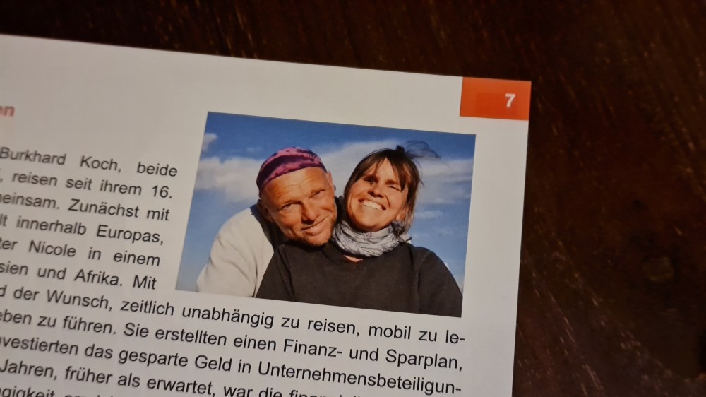 Sogar das Thema „Reisepartner“wird behandelt. Auch dazu sollte man sich ein paar Gedanken machen. Und die Beiden bringen in diesem Zusammenhang ein paar Aspekte ins Spiel, über die man sich sonst wahrscheinlich erst Gedanken macht wenn es zu spät ist.