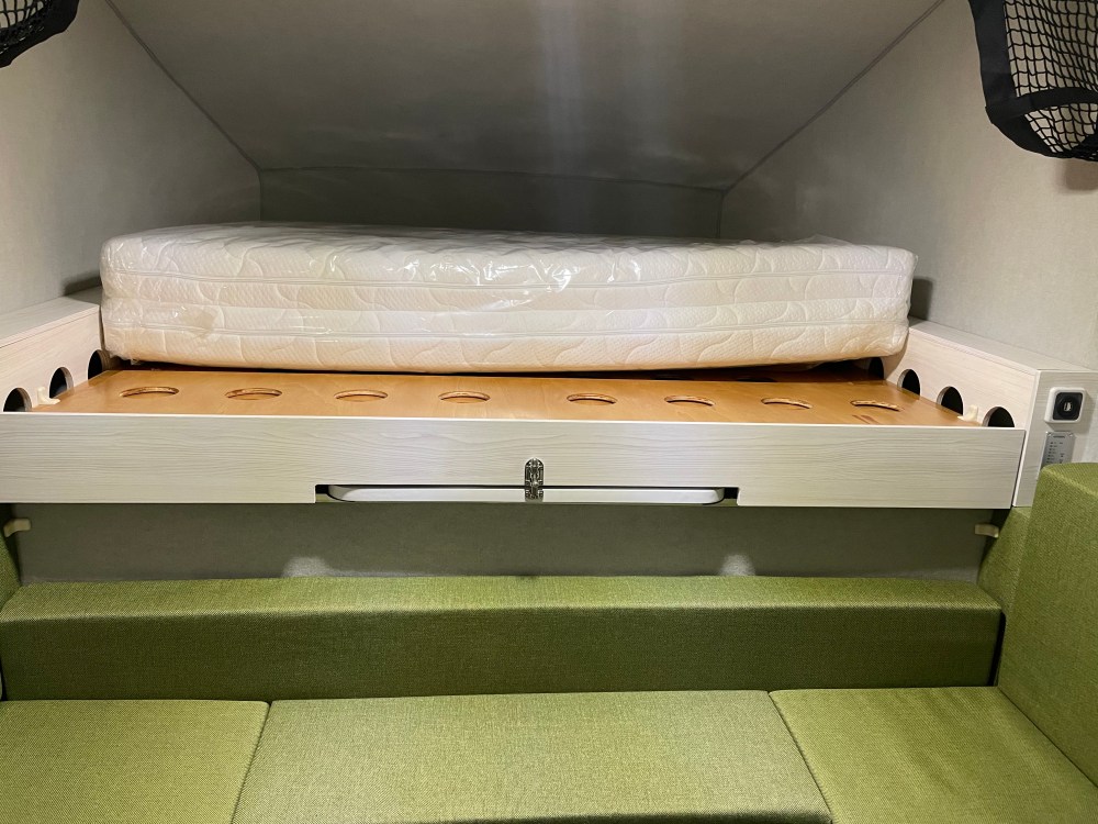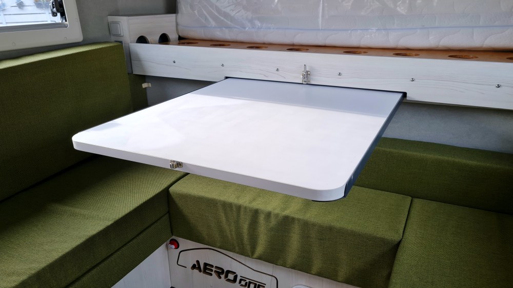 Durch die gut isolierten Wände kann die Camperhit als Kabine für alle vier Jahreszeiten genutzt werden und so bleibt auch die Geräuschkulisse im Inneren recht angenehm leise. Ein echter Vorteil gegenüber der Hubdachkabinen mit Plane. Wer einmal morgens um 6 Uhr auf einem belebten Campingplatz von nebenan spielenden Kindern geweckt wurde, weiß was ich meine…:-) Und auch eine stürmische Nacht lässt sich etwas ruhiger, als in einer Kabine mit Klappdach mit Zeltstoff verbringen.