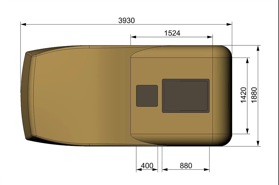 Die Grundmaße sind wie bei vielen anderen Kabinen für EU Pickups abgestimmt. Egal ob Double Cab oder Extra Cab. Nur Single Cabs haben ein Nachsehen. Für die Schweizer ist gerade die Breite interessant. Dadurch darf sie nach meinen aktuellen Informationen auch dort ohne viel Aufwand einer gesonderten Abnahme auf den gängigen Pickups gefahren werden. Und breitere Außenspiegel am Pickup sind auch nicht nötig. Die Sicht nach hinten über die zwei Serienspiegel ist völlig o.k.