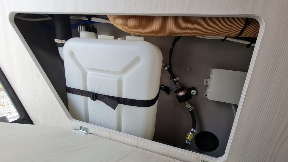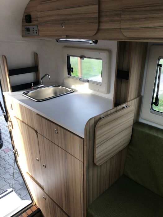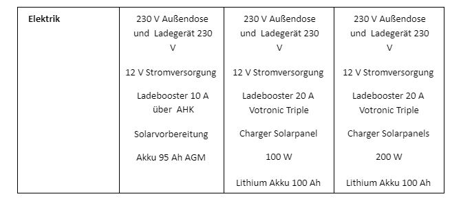Schon in der Standardausstattung bekommt man 47 l Frischwasser / 9 l Abwasser mit Tauchpumpe und eine Stromversorgung mit einer 95 Ah AGM Batterie und 230 V Ladegerät sowie 10 Ah Ladebooster über AHK Dose verbaut. Eine Stromversorgung mit Lithium Batterien sind aber auch kein Problem. Und eine Vorbereitung für eine Solaranlage ist selbst schon in der Flexplorer Grundausstattung beinhaltet. Vieles ist auf Wunsch möglich.