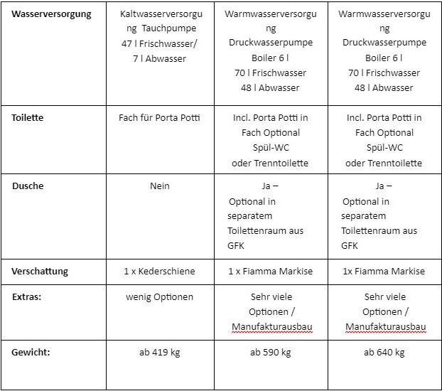 Die Camperhit ist familientauglich. So sollten 2 Erwachsene und 2 kleine Kinder ausreichend Platz finden. Das Ganze startet mit einem Preis ab 23.990 € incl. Fracht / Auslieferung Sigmaringen. (Stand 21) Die Zubehörliste ist lang und je nach individuellen Wünschen und Ausstattungslinie knackt man auch die 30000.-€ Marke. Dann liegt man immer noch im Vergleich der aktuell verfügbaren Wohnkabinen im unteren Preissegment.