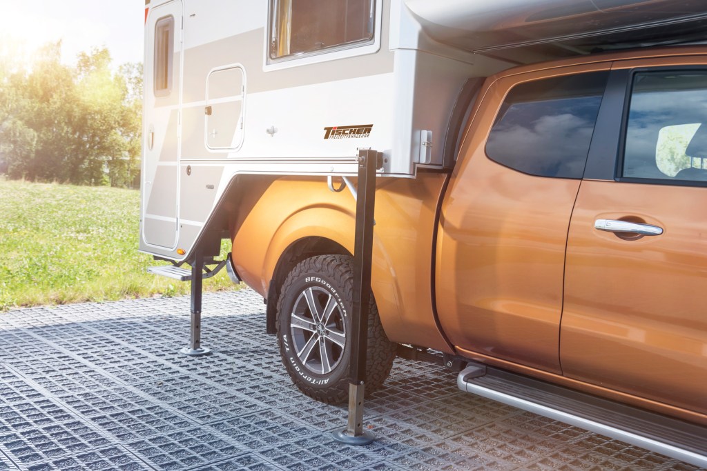 Der Vorteil der Stützen ist, dass die Kabine problemlos längere Zeit nur auf den Stützen stehen kann. Dadurch lässt sich der Pickup flexibel nutzen, wenn zum Beispiel im Urlaub die Lebensmittelvorräte aufgefüllt werden müssen oder ein Ausflug geplant ist.