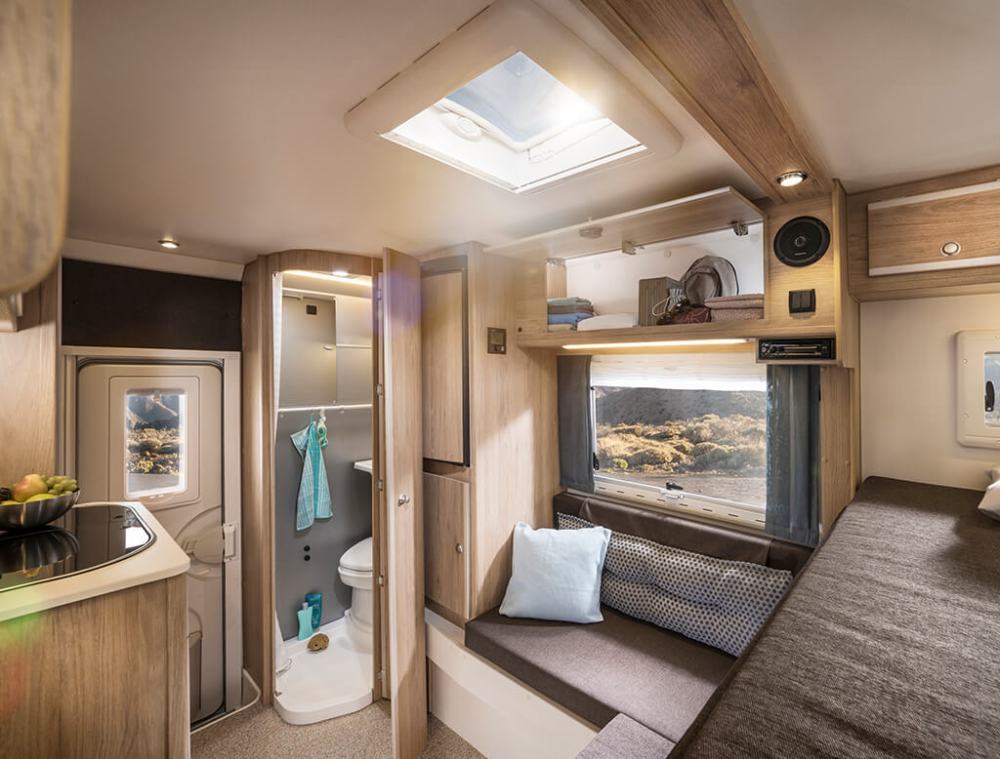 Peter Tischer: Bis auf die Trail/Box 200 haben alle unsere Kabinen ein vollausgestattetes Bad mit Dusche und Toilette. Bei der Trail/Box 200 ist es größentechnisch nicht möglich, ein Bad einzubauen. Für dieses Modell gibt es aber ein Porta Potti.