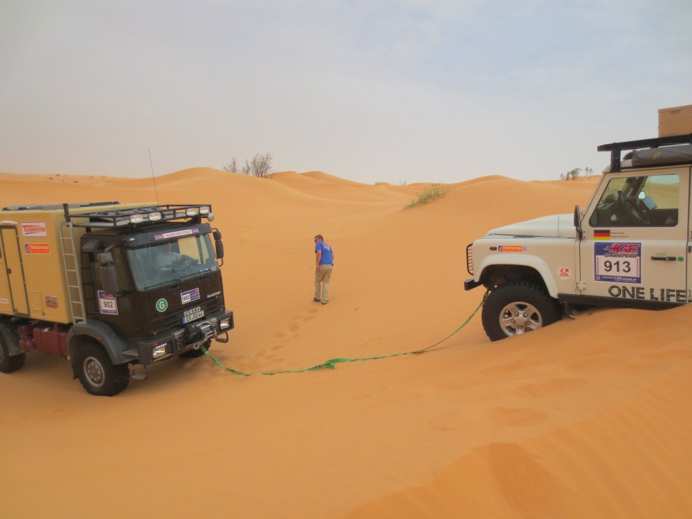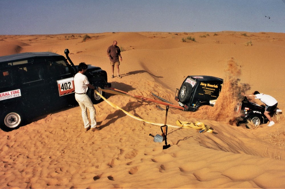 Wer sich mit seinem Geländewagen in unwegsamen Gelände bewegt, muss natürlich auch einmal damit rechnen sich festzufahren. Das ist mir schon öfter passiert, aber ich war dann meistens mit mehreren Fahrzeugen unterwegs und so stellte eine Bergung oft kein Problem dar. Schnell den Bergegurt rausgeholt oder die Seilwinde aktiviert. Kein Problem. Bei Offroadreisen nach Rumänien oder in die Wüste ist man dann sowieso entsprechend gut gerüstet: Seilwinde, Seilzug, Schaufel, Sandbleche, Bergegurte…etc. Alles dabei! Da macht eine Bergung sogar manchmal Spaß.