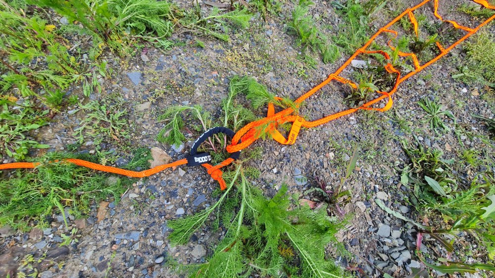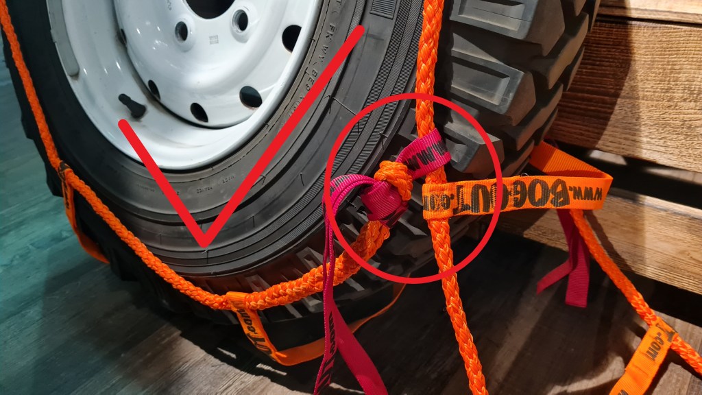 Jetzt noch einen halben Meter vor oder zurückfahren und das Bog Out ist dann wieder frei und kann von dem Reifen abgezogen werden. Die Knoten lassen sich recht einfach wieder lösen.