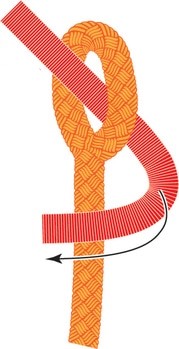 Um das Bog Out am Reifen zu befestigen nutzt man Vorzugsweise den folgenden Knoten. Mit ein bisschen Übung gelingt er schnell. Das Gute an diesem Knoten ist, das er sich auch schnell wieder lösen lässt. Wenn man das ein paar mal geübt hat ist es überhaupt kein Problem .