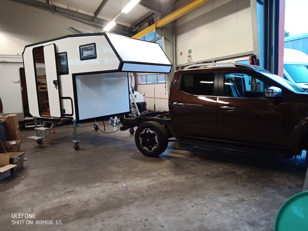 Jurij Werbenskij: In unserem Fall steht die Kabine auf einem Nissan Navara NP300 mit einem Gesamtgewicht von 3.250 kg .Mit Auflastung wäre 3.500 kg möglich. Mit der Kabine bringen wir 2.750 kg auf die Waage. Damit bleiben 500 kg an Zuladung, ohne Auflastung.