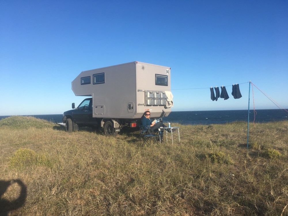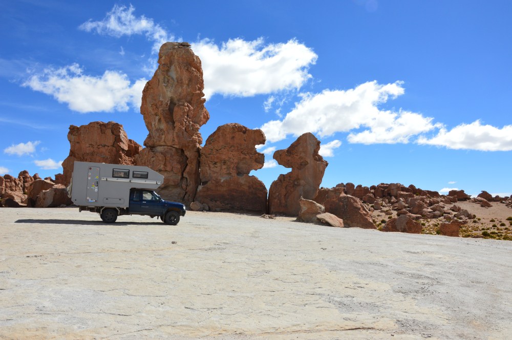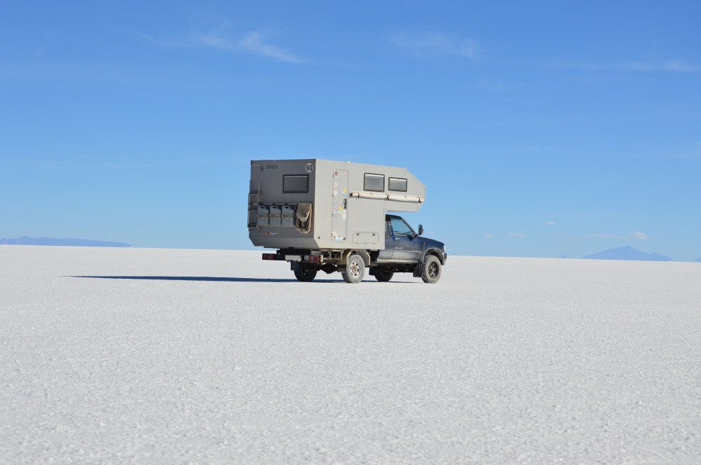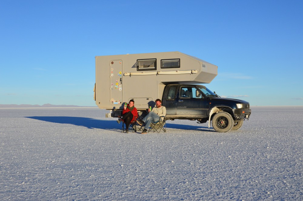 Helene und Simon beim chillen mit ihrer tollen Alkovenkabine in der Salar de Uyuni