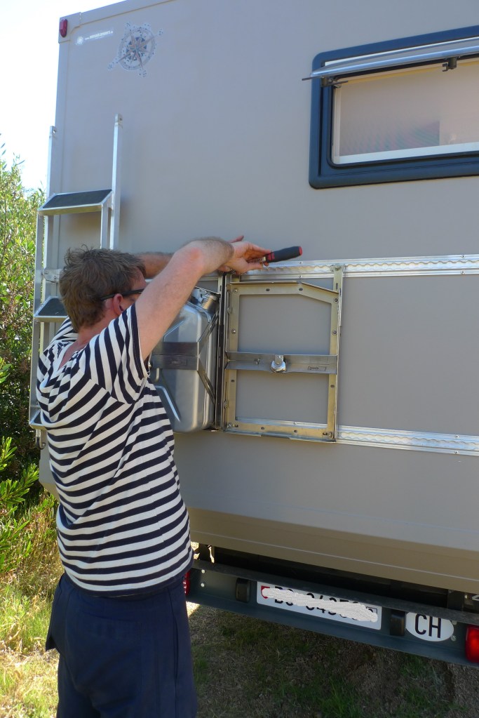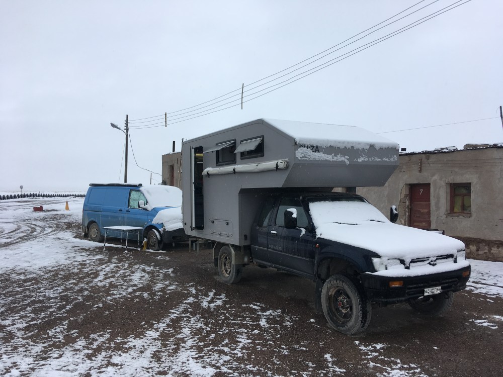 Wir konnten dann glücklicherweise in einer äußerst einfach ausgestatteten Werkstatt die Schäden provisorisch reparieren. Das meiste haben wir aber selbst gemacht. Die ganze Geschichte hat etwa 2 Tage gedauert. Natürlich wurde unser Schaden nicht vollumfänglich bezahlt. Wir waren aber einfach froh, dass wir weiterfahren konnten, der Unfall hätte leicht auch das Ende der Reise bedeuten können. Inzwischen haben wir zuhause alles wieder definitiv repariert und einige Sachen gleich verbessert. So ist zum Beispiel der neue Unterfahrschutz bei Bedarf hochklappbar, um hinten einen besseren Böschungswinkel zu erhalten. Diese Modifikation hatte ich aber schon vor dem Unfall geplant…