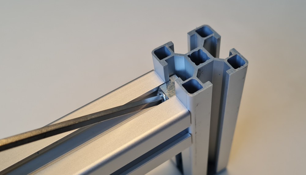 Hier kann man sich die einfache Verbindung von 2 x 45er Profilen in einem kurzen YouTube Beitrag von MiniTec mal anschauen.