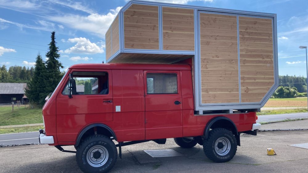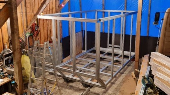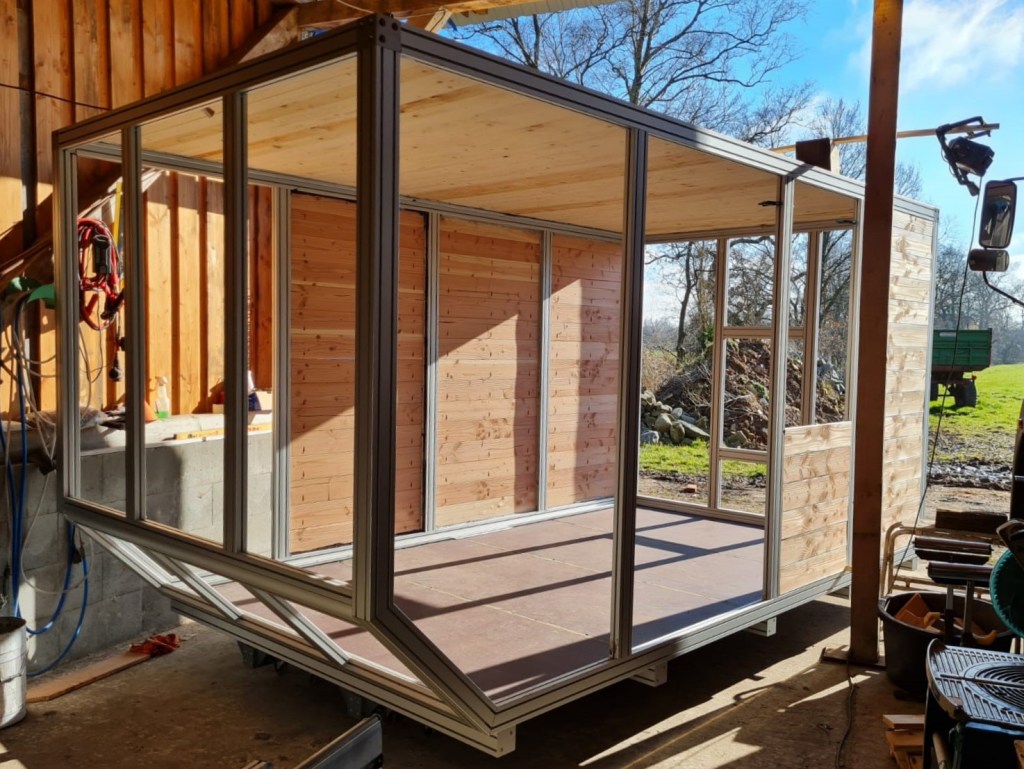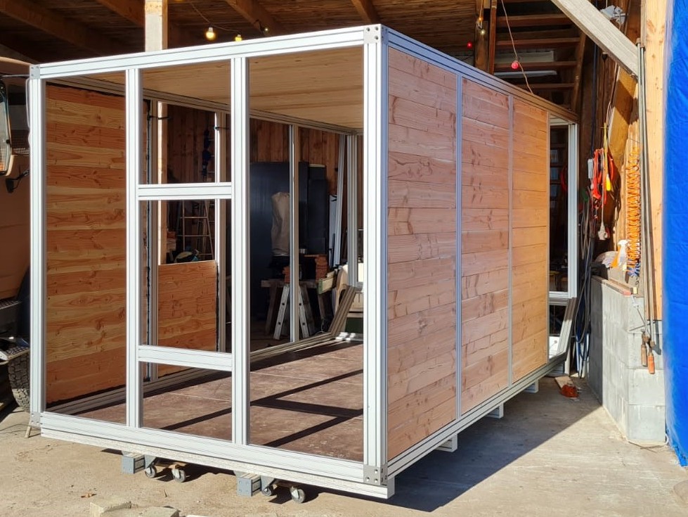 Bei meiner Recherche zum Bericht bin ich noch auf ein weiteres ungewöhnliches, aber geniales Projekt gestoßen, was ich vorher so noch nicht gesehen habe: Eine Kabine in Rahmenbauweise mit MiniTec Aluminium Profilen.