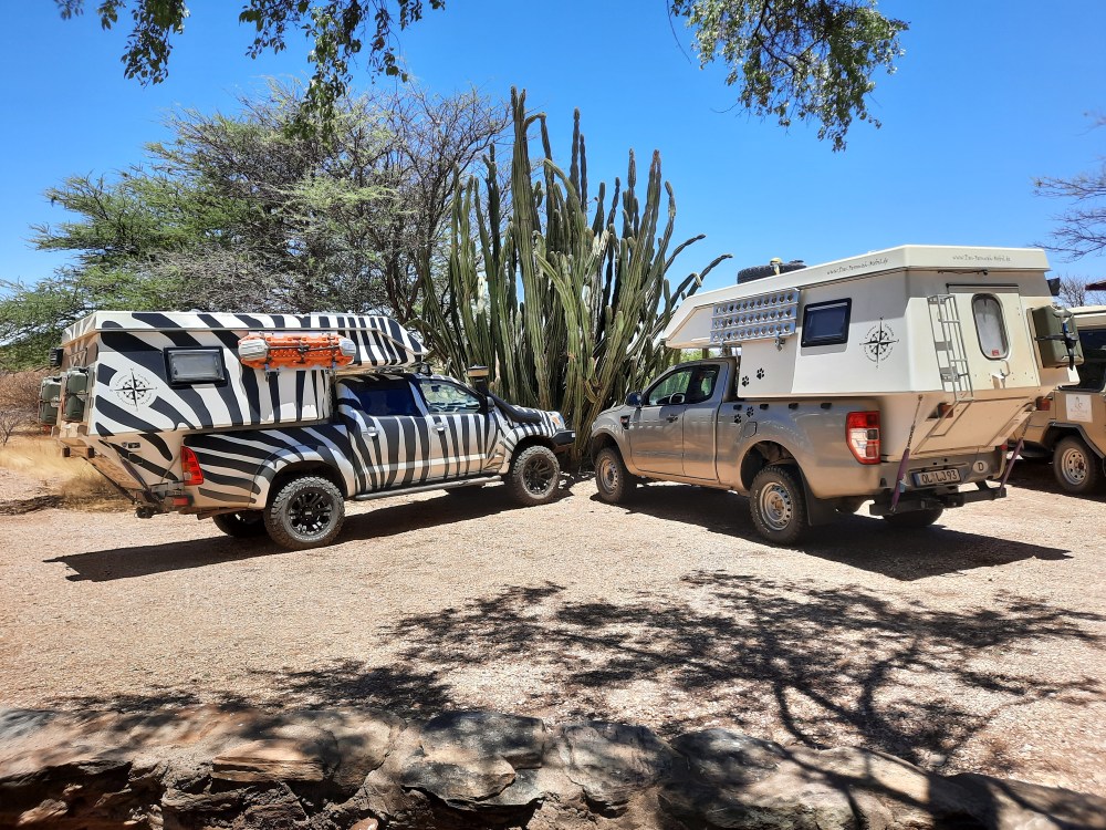 Heike: Ja, das war wirklich lustig! Über die Fernweh-Mobil-Gruppe auf Facebook haben die Besitzer von Kabine 34 und wir mit der Kabine 35 herausgefunden, dass wir zur gleichen Zeit in Windhoek sind. Die Gelegenheit musste natürlich für ein Mini-Fernweh-Mobil-Treffen genutzt werden!