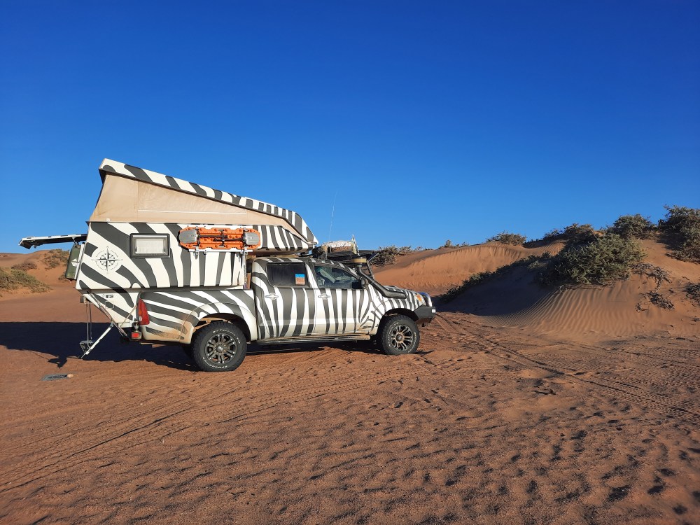 Vido: Wir dürfen uns mit um unser Enkelchen kümmern, das Mitte Oktober letzten Jahres auf die Welt gekommen ist. Das ist dann auch ein großes Abenteuer! Irgendwann möchten wir mit dem Zebra noch nach Island und in die skandinavischen Länder, aber das lassen wir Dich rechtzeitig wissen! Und vielleicht führt uns der Weg nochmal nach Afrika, aber dann mit einem Leihwagen, da die Verschiffungskosten enorm in die Höhe gegangen sind. Eine Unterstellung in Afrika kommt für uns nicht in Frage, weil uns Erstens der Aufwand mit Carnet, Zoll, Versicherung und so weiter zu nervig ist und Zweitens, weil wir eben mit dem Auto noch andere Ziele bereisen wollen.