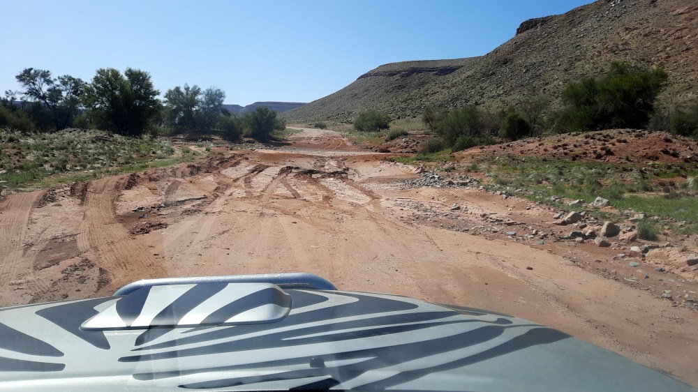 Roger: Man sollte dabei aber immer das Wetter im Auge haben! Jedes Jahr ertrinken viele Menschen in Flussbetten. Der ausgetrocknete Boden kann bei starken Regen das Wasser nicht aufnehmen. Und plötzlich kommt eine Wasserlawine durchs Flussbett gerauscht, obwohl der Regen viele Kilometer entfernt herunterkommt und vor Ort vielleicht die Sonne scheint. Das habe ich selbst einmal in Marokko erlebt. Das war ein beeindruckendes Erlebnis. Ab da wusste ich, dass es nicht nur ein Märchen ist was gerne am Lagerfeuer erzählt wird. ( siehe Marokko Bericht Teil II )