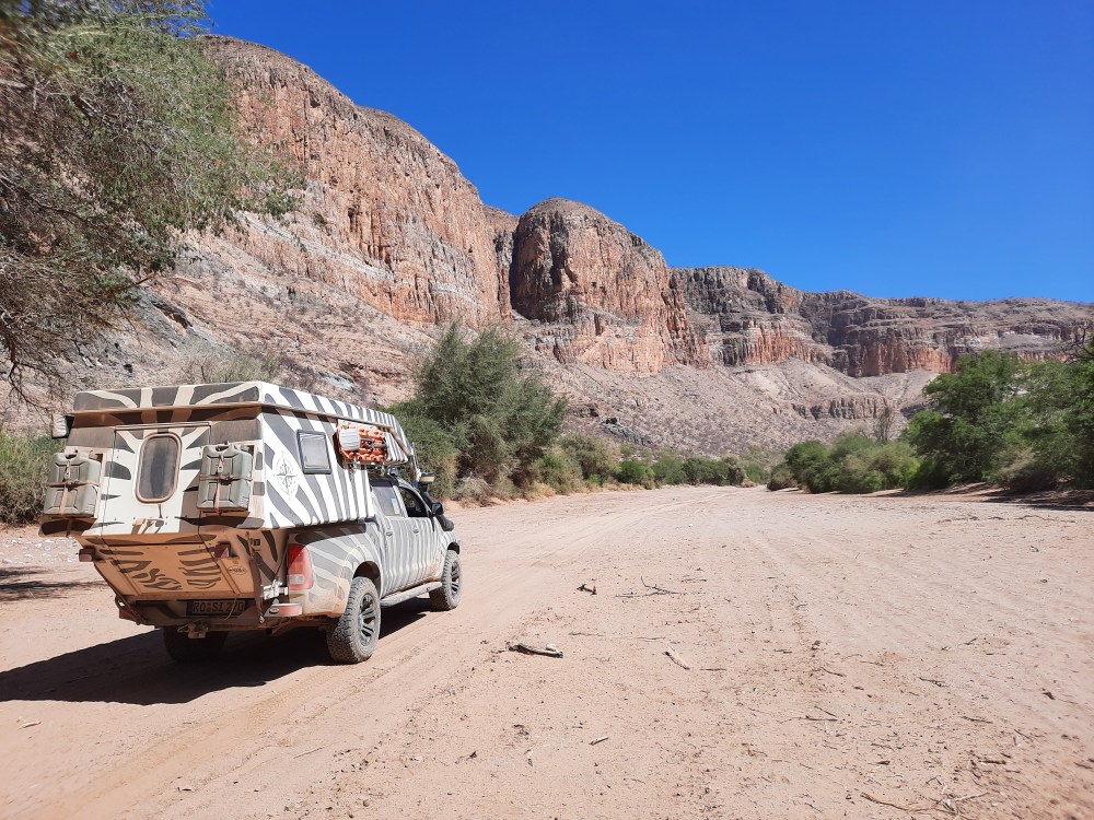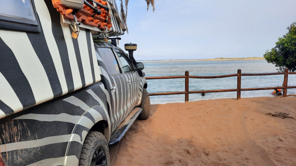 Heike: Aus heutiger Sicht ist viel zu viel Gerödel im Fahrzeug. Dabei haben wir, als wir das Auto nach 22 Monaten wieder übernommen haben, schon über 50 Kilogramm (!!) Teile, Klamotten und Sachen rausgeschmissen, die wir im ersten Anlauf toll fanden, wo sich aber schnell herausgestellt hat: Das brauchen wir nie! Wir hatten zum Beispiel ein zusätzliches Seitenteil für die Foxwing-Markise nebst Stangen dabei. Bis jetzt hatten wir die Foxwing dreimal offen, und das Seitenteil hätten wir bis heute nicht gebraucht. Das durfte in Windhoek bleiben. Oder eine tolle zusammenlegbare Feuerstelle aus Edelstahl mit Grillrost – raus damit, es gibt im südlichen Afrika nahezu überall Feuerstellen, und wo es keine gibt, werden Nudeln gekocht.