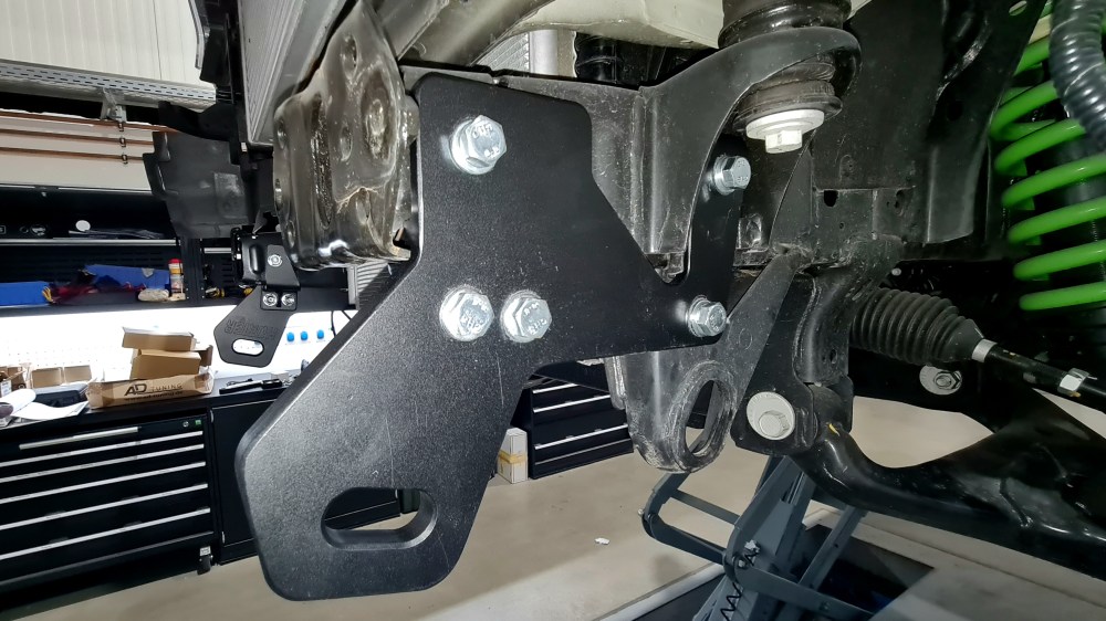 Und da man sowieso schon mal alles demontiert hat, werden auch gleich zwei stabile Bergeösen angebaut. Denn wenn man sich mal im Gelände richtig fest gerammelt hat, fehlen bei den modernen Pickups oft die Befestigungsmöglichkeiten um einen Schäkel einzuhängen. Jetzt hat der Ranger zwei stabile Ösen die auch den härtesten Bedingungen standhalten