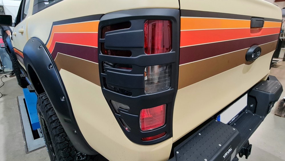 Hinzu kommen 3 cm Spurverbreiterungen auf jeder Seite. Damit die Reifen aber nicht überstehen und somit der Segen des TÜVs verwehrt wird, bekommt der Ranger entsprechende Verbreiterungen montiert.