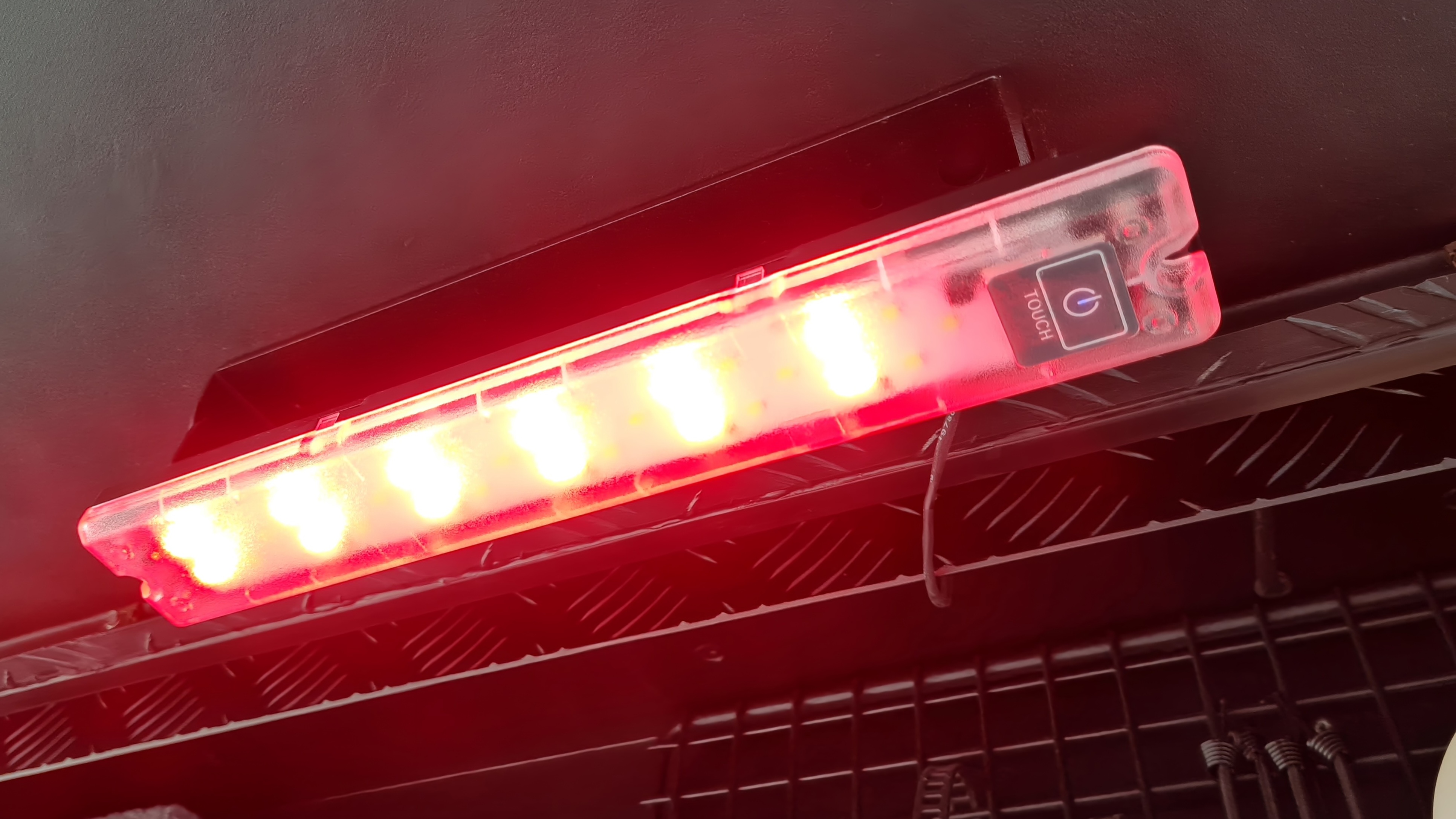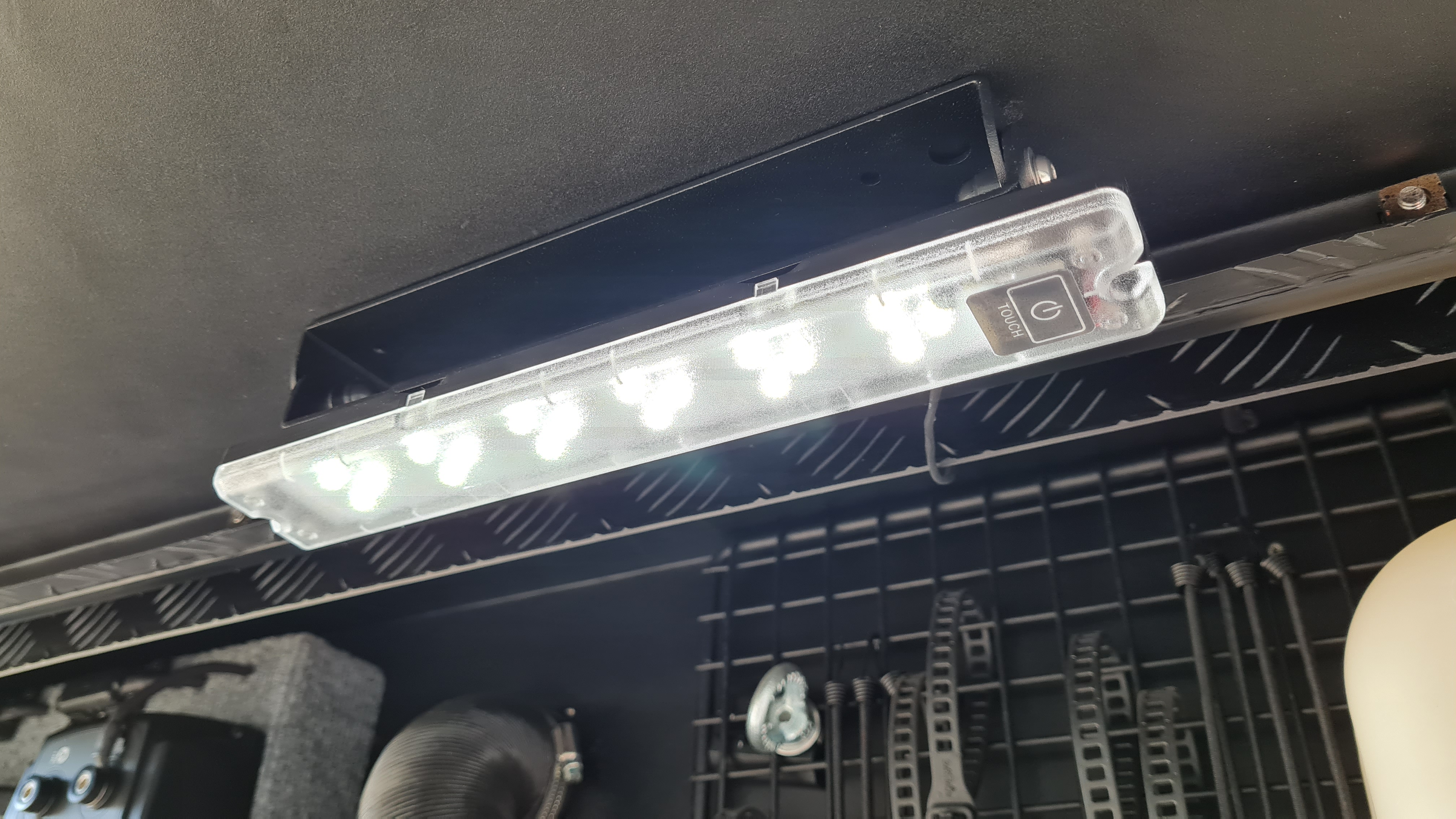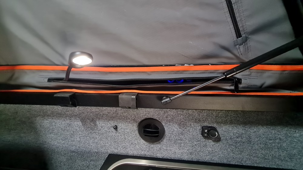 In den Klappen und im Innenraum sind moderne LED Lampen verbaut die sich auch auf „rot“ schalten lassen. Das hilft gegen Kleinvieh.