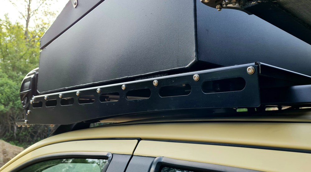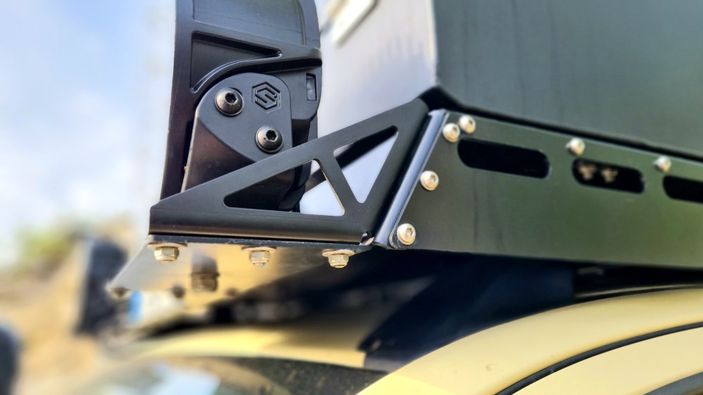 Diese wurden an einem, von der PWS Offroad für den Kunden angefertigten Träger verbaut. Ein Wunsch des Kunden war eine „Wood Box“ von Alu Cab vor die Kabine zu setzen. Da es in der Wüste selten Holz gibt, sammelt man während der Fahrt alles Holz was man so findet und schmeißt es in die Box. Um dann am Abend das obligatorische Lagerfeuer entzünden zu können.