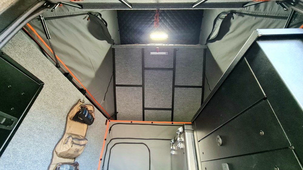 Die Khaya-Absetzkabine ist in zwei Ausstattungsvarianten lieferbar. Die hier gezeigte „Comfort Ausführung“ oder mit zwei zusätzlichen Schlafplätzen in der Variante “Family”.