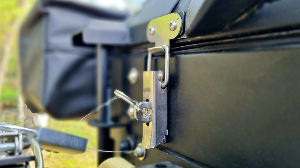 Man löst die Splinte, öffnet die Klammern und das Dach springt nach etwas anheben durch die seitlichen Stoßdämpfer wie von Zauberhand auf.