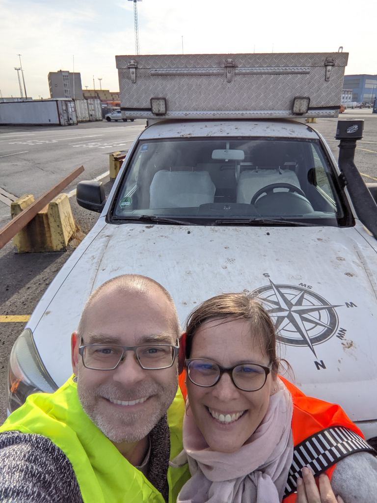 Am 26. Oktober 2021 erreicht der Container mit unserem Fahrzeug deutschen Boden. Anfang Februar 2020 waren wir zusammen in Italien an Bord eines Frachtschiffes nach Israel gegangen. Nach nicht einmal drei Monaten, am 23. April 2020, waren wir wieder zurück in Deutschland und nun, über 18 Monate später, ist es uns endlich gelungen, auch unser geliebtes Reisegefährt wieder nach Hause zu holen.