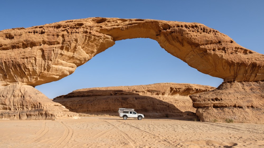 Im Februar 2020 gingen wir in Italien zusammen mit unserem Fahrzeug an Bord eines Frachtschiffs nach Israel. Von dort führte die Fahrt nach Jordanien, wo sich schon nach wenigen Tagen die Lage zuspitzte. Man hörte von ersten Grenzschließungen und so verzichteten wir auf unseren zweiten Tag in Petra und hetzten über die Grenze nach Saudi-Arabien. Dort hatten wir immerhin drei Monate Aufenthaltsdauer, deutlich besser als 30 Tage in Jordanien. In drei Monaten sollte sich die Lage wieder entspannt haben – dachten wir.