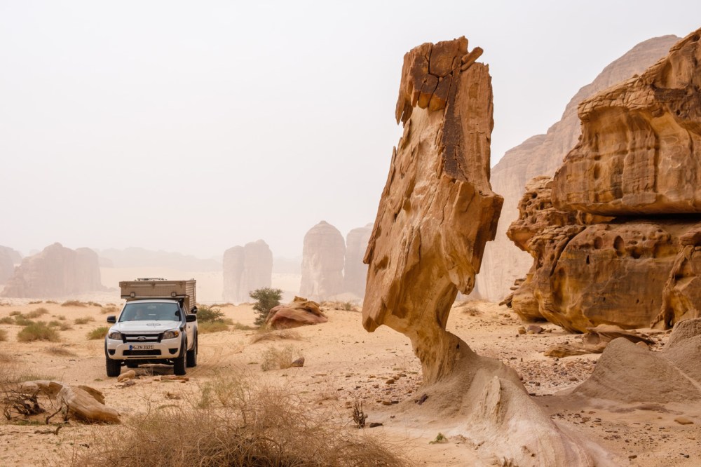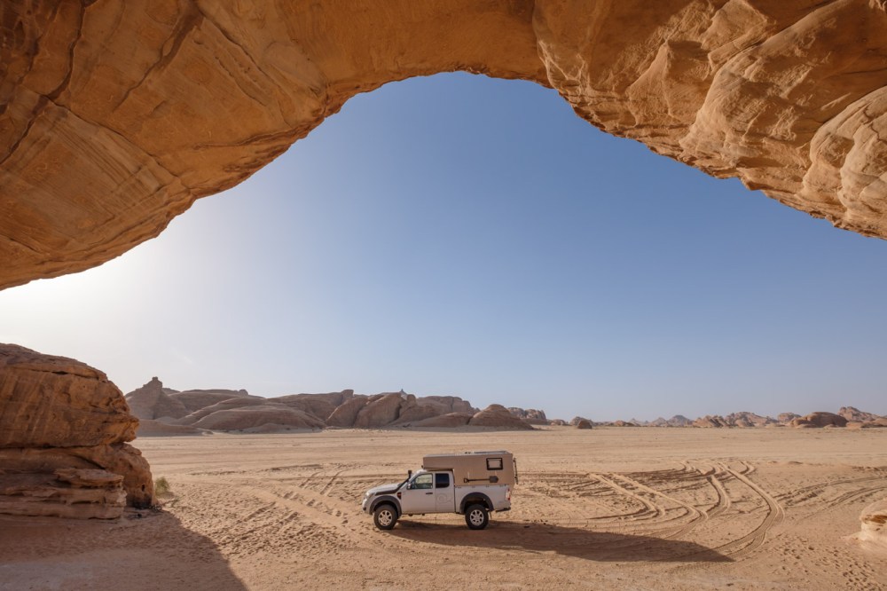 Als uns Roger im Juli 2019 für wohnkabinen.online interviewte, waren wir gerade in Kasachstan und freuten uns auf die letzten Abschnitte unserer Reise: das russische Altaigebirge, die Mongolei und die 6.000 Kilometer lange Fahrt quer durch Russland zurück nach Europa. Gleichzeitig planten wir eine Fortsetzung. Nach unserer Rückkehr wollten wir unserem Auto in Deutschland ein neues Fahrwerk spendieren, die Bettkonstruktion im Alkoven überarbeiten, eine neue Versorgerbatterie einbauen, die Kabinenisolierung an ein paar Stellen nacharbeiten, Moskitonetze flicken und neue Reifen aufziehen. Damit fühlten wir uns für die Reise durch Afrika gut vorbereitet. Die Route hatten wir über den Mittleren Osten geplant. Uns reizte die Möglichkeit, Saudi-Arabien zu bereisen, welches sich nur wenige Monate zuvor für touristische Aufenthalte geöffnet hatte.