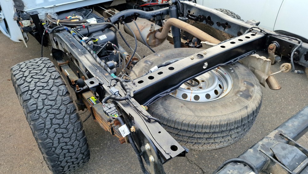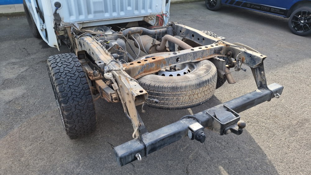 Solange beschäftige ich mich mit dem Abnehmen der Pritsche. Es geht überraschend gut. Man muss aufpassen, dass man kein Kabel vergisst zu trennen. Und auch der Tankeinfüllstutzen mit seinen Entlüftungsschläuchen gehen gut zu lösen. In Summe vielleicht 2 – 3 Stunden Arbeit. Jetzt heißt es Rostvorsorge betreiben, das Fahrzeug exakt zu vermessen, um den Hilfsrahmen zu planen. Und warten, bis die Kabine vom Lackierer kommt.