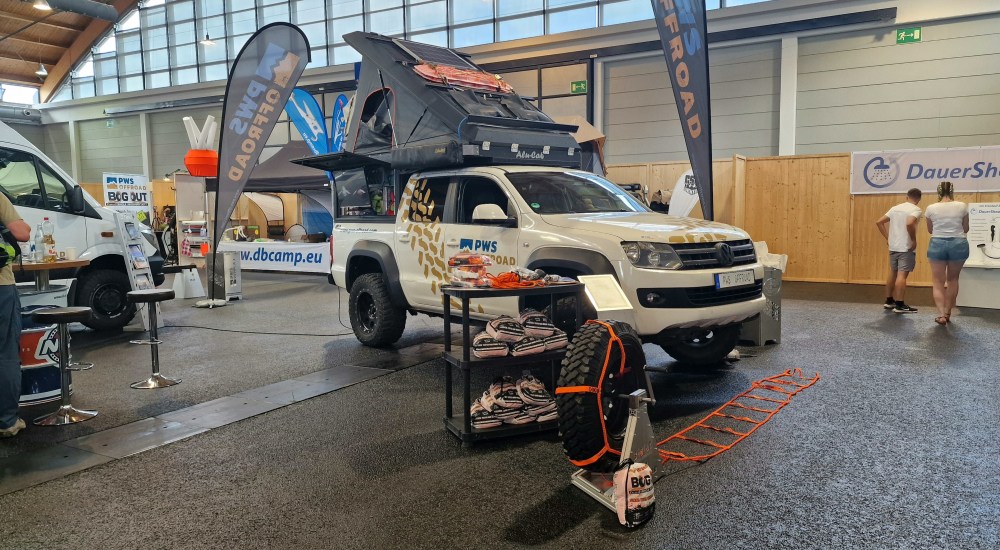Die PWS Offroad GmbH zeigt ihren Amarok mit Bodylift, Ironmanfahrwerk und Canopy-Camper vom südafrikanischen Hersteller Alu Cab. Der Aufbau wird auf die Pritsche aufgesetzt und besteht komplett aus stabilen Aluminium. Außerdem zeigt die PWS Offroad das „Bog Out“. Ein Bergetool aus Australien, das die Räder als Seilwinde nutzt.