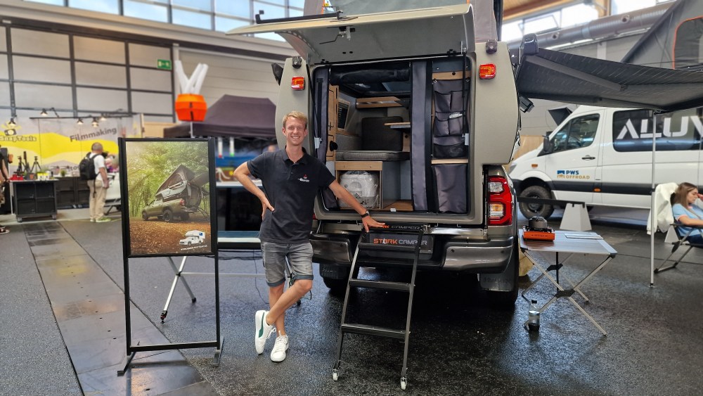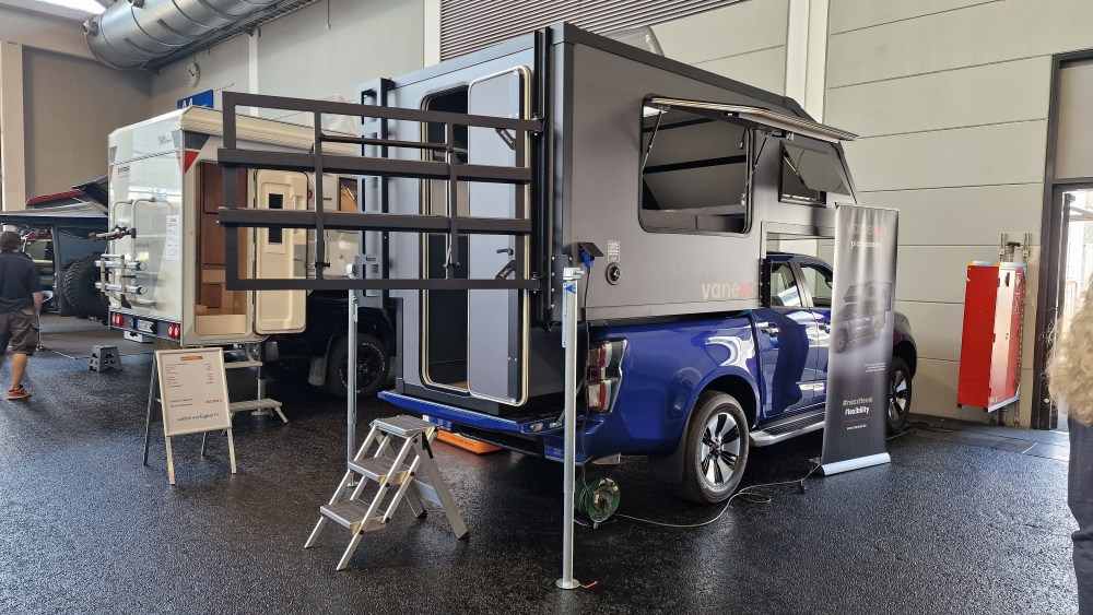 Oliver Gitschier von Womo4you hat eine Neuheit mitgebracht: den Vanexxt -Die Pickupboxx. Eine superleichte Absetzkabine (nur 430 kg), die für alle EU Pickups geeignet ist. Und trotzdem einen großzügigen Innenraum bietet.