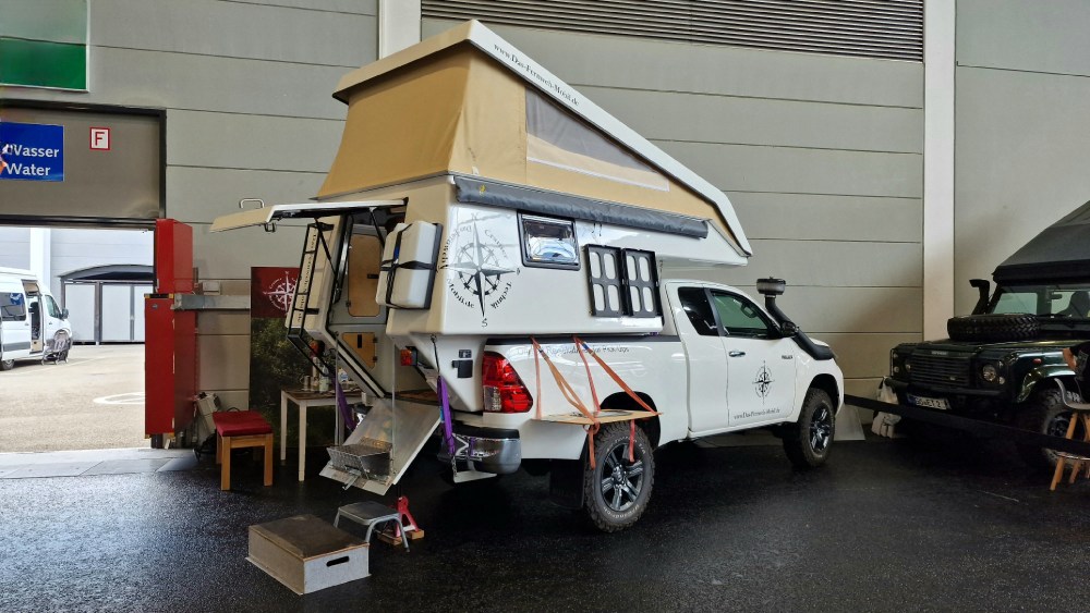 Steffi und Benno Cramer und ihr beliebtes Fernweh Mobil dürfen natürlich auch nicht fehlen. Wer eine Reise erprobte Absetzkabine für echte Offroad Reisen sucht, ist mit dem Fernweh Mobil bestens bedient. Das System ist seit Jahren ausgereift und es gibt kaum etwas zu verbessern. Das Alleinstellungsmerkmal: Auch mit zugeklappten Dach ist sie voll nutzbar!