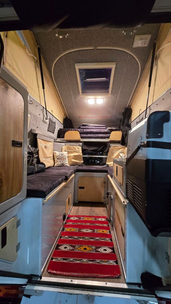 Der geniale seitliche Auszug von Laske-Expedition. Ich glaube auch einzigartig in dieser Kategorie . Auch das schräge Aufstelldach ist etwas Besonderes in der Welt der Pickup-Camper.