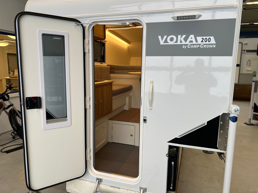 Trotz ihrer kompakten Bodenlänge von nur zweihundert Zentimeter (deshalb der Name Voka 200) bietet die Kabine ein großzügiges Raumgefühl, da bewusst auf Hängeschränke verzichtet wurde, um den Schwerpunkt niedrig zu halten und den Lebensraum zu maximieren. Die Sitzgruppe ist wie erwähnt erhöht (Raised Front Dinette) und bietet Platz für bis zu vier Personen.