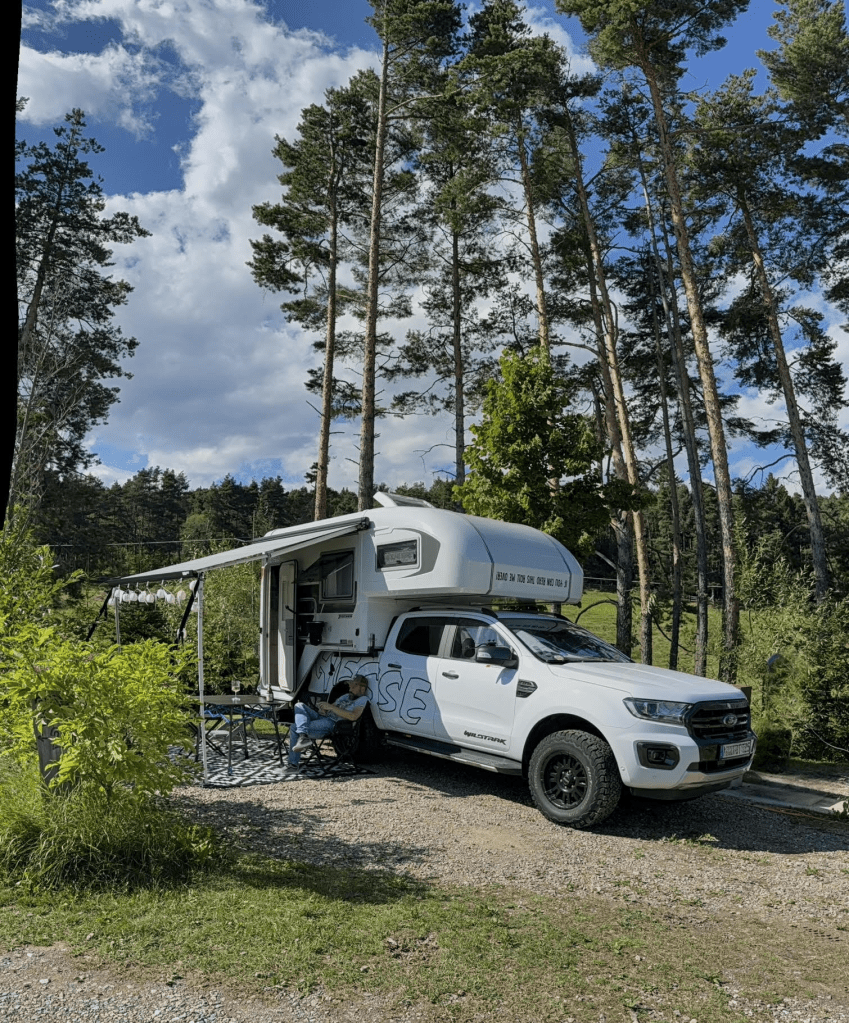 Andrea und Holger kommen aus dem Rheinland und sind seit 2015 leidenschaftlich mit dem Camper unterwegs. Seit 2022 reisen sie mit ihrem Ford Ranger Wildtrak und einer Podlunsek-Revolux-Kabine durch Europa.
