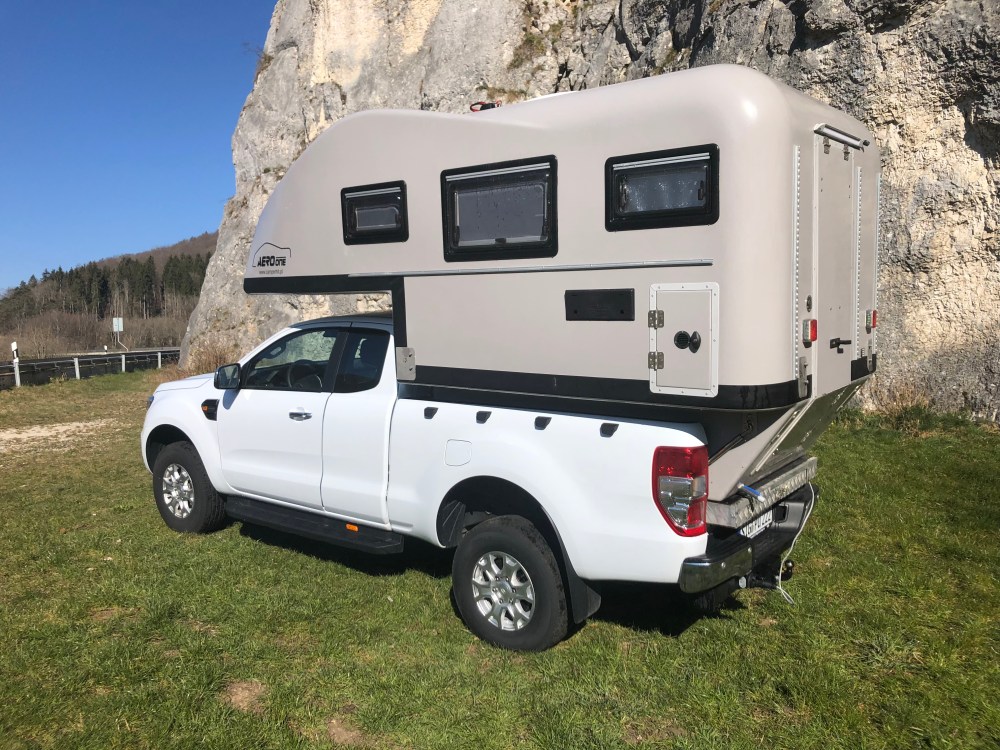 Wir haben uns dann nach einer kompakteren Wohnkabine umgesehen die in der Schweiz als Ladung gefahren werden kann und durch das geringere Gewicht von ca 420 kg in der Basisversion und schlankere Aussenmasse insgesamt auch hervorragend für Offroadnutzung und volle Nutzung der Anhängelast von 3.500 kg des Pick Up zum Beispiel für einen Motorrad- oder Pferdeanhänger geeignet ist.