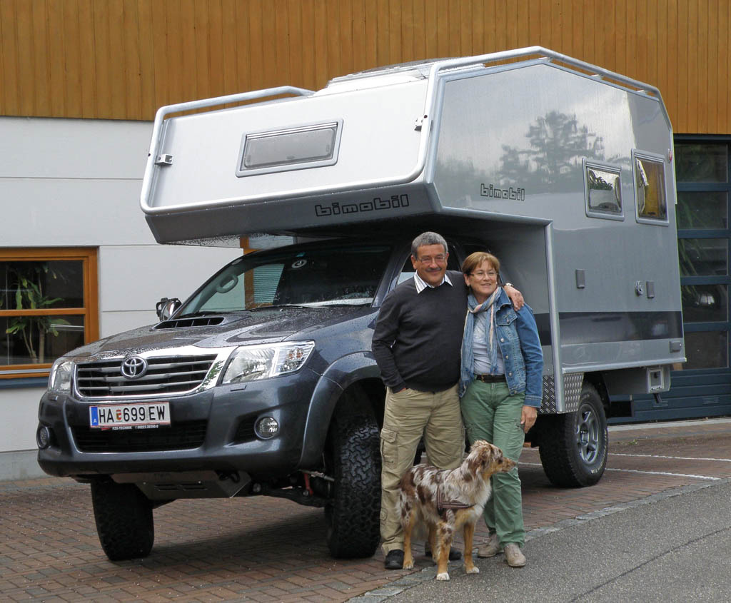 Ihr Mobil heißt WoKi (=WohnKiste) – ein Toyota Hilux mit einer Bimobil Wohnkabine, damit sind